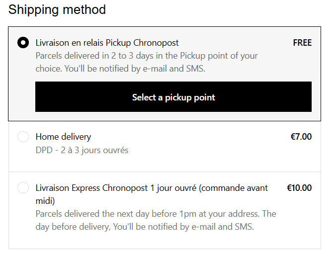 - Note: If you choose delivery to a pick-up point, make sure to click on "Select a pick-up point".