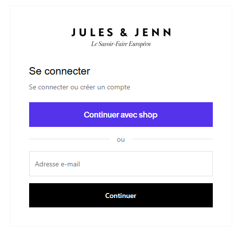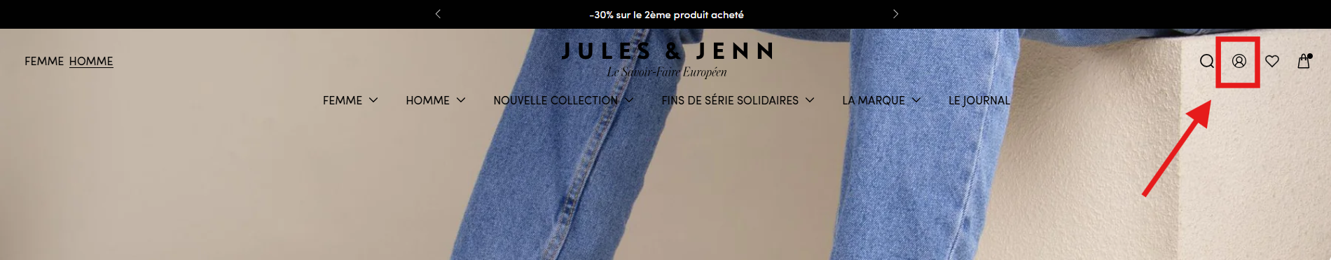 À noter : Chez JULES & JENN, la connexion est simplifiée. Vous n'avez pas besoin de créer de mot de passe. Un nouveau code vous sera envoyé par e-mail à chaque nouvelle connexion pour garantir votre sécurité.