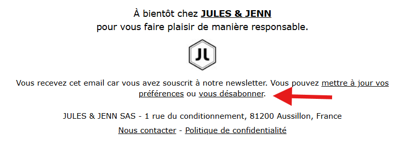 - Cliquez sur le lien cliquable "Vous désabonner" (ou "Unsubscribe").
