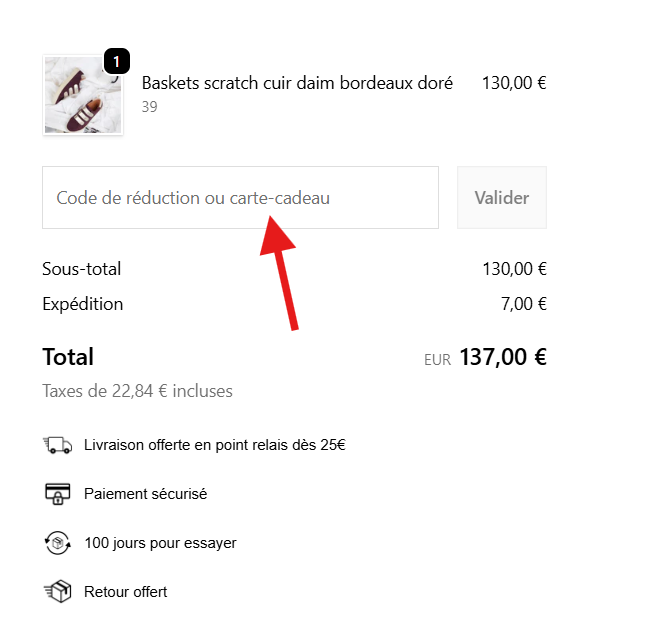 L'ajout de votre code de réduction se fait tout simplement lors de la validation de votre commande.